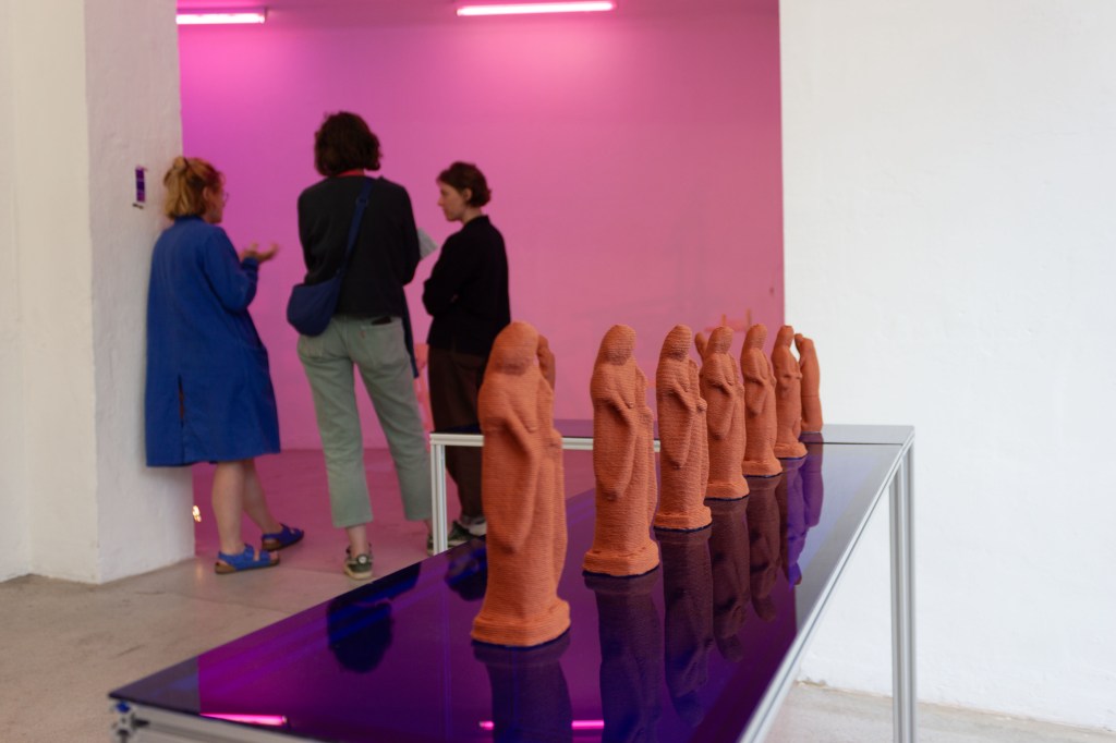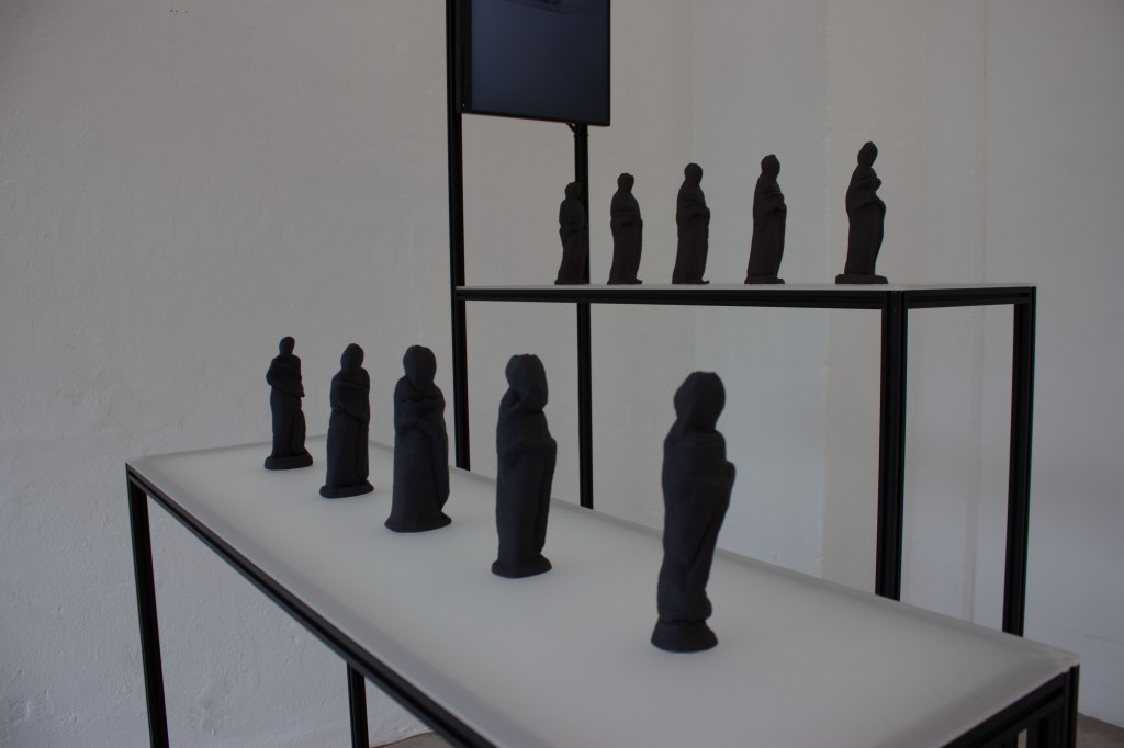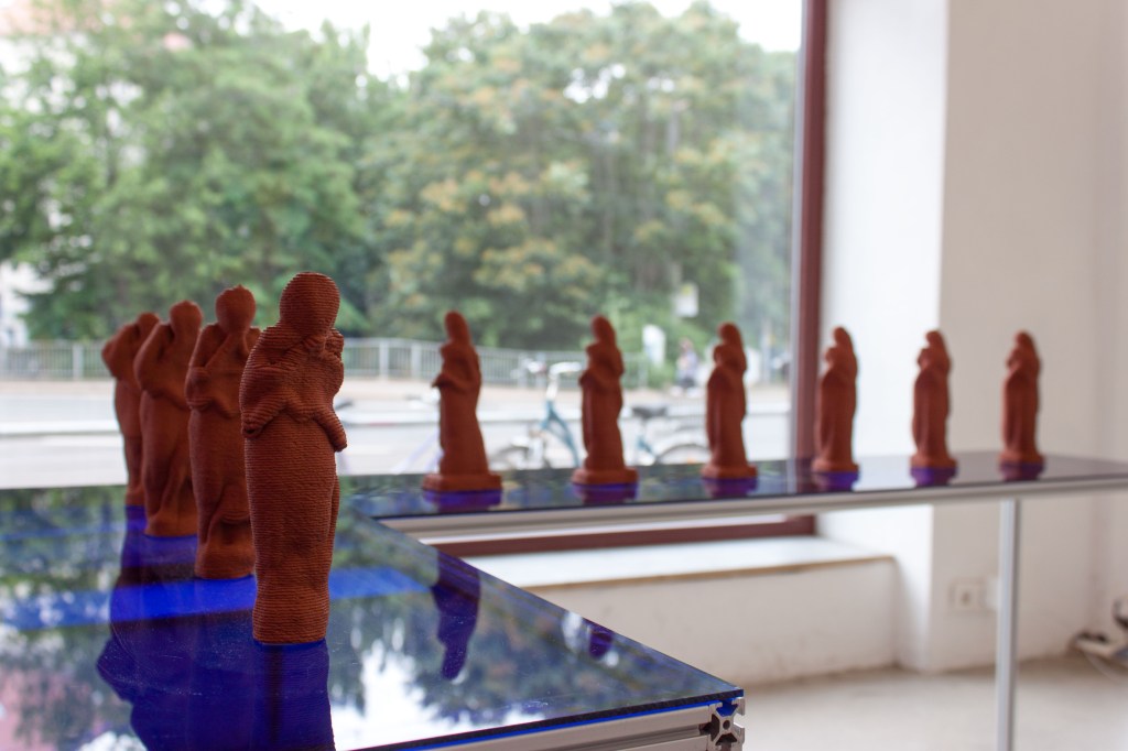 The exhibition features 3 sculptures that were created by the GAN and then placed in real space using classical sculptural methods, such as bronze casting. The presentation of the objects is complemented by a video installation that documents the working methods of the GAN. In it, sculptures can be seen in continuous succession which are created and output in real time by the GAN.