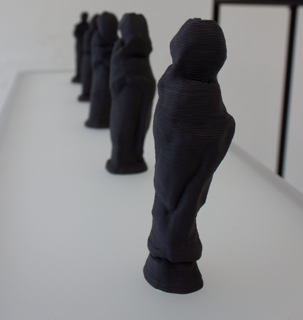 This artistic work includes 1500 sculptures created by an artificial intelligence network. The GAN was trained with 3D data of thousands of original sculptures from different art historical periods from museums worldwide. This is an unique project that demonstrates sculptural and artistic exploration in the age of an increasingly technologically diversifying and digitalized world. This approach is based on the idea that artistic creation has always been a practical confrontation with the status quo of technological and industrial developments and the accompanying processes of social change. In detail, it tries to capture the automated and invisible processes of new media technologies and to make them sensually comprehensible and tangible. It is raising the question of how creatively artistic work can already be „outsourced“ and „automated“ today, and what this does to our common conception of art.